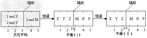 N(g)+P(g)分别在密闭容器的两个反应室中进行,反应室之间有无摩擦、可滑动的密封隔板。反应开始和达到平衡状态时有关物理量的变化如图所示