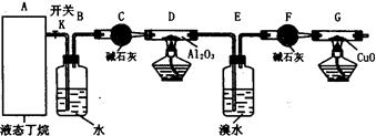 下图是某化学兴趣小组进行丁烷裂解的实验流程。(注:CuO能将烃氧化成CO2和H2O,G后面装置与答题无关,省略铁架台等。)按下图连好装置后,需进行的实验操作有:①给D、G装置加热;②检查整套装置的气密性;③排出装置中的空气等……