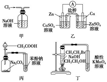 本题解析:氯气也会被NaOH溶液吸收,A错误;左池中应加可溶性锌盐,右池中加可溶性铜盐才能构成原电池,B错误;醋酸与Na2CO3反应生成CO2,CO2通入苯酚钠溶液生成苯酚,根据“强酸制弱酸”的原则,可得出结论,C正确;乙醇易挥发,挥发出的乙醇也能使酸性高锰酸钾溶液褪色,D错误。