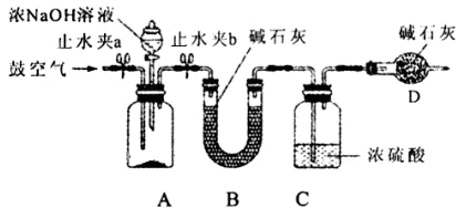 ②装置B中的碱石灰具体有吸水性,吸收混在氨气中的水分(2分)装置D的作用:C中浓H2SO4具有吸水性,防止空气中的水蒸汽进入装置C中,减小实验误差。答案:吸收混在氨气中的水分(2分)防止空气中的水蒸汽进入装置C中(2分)