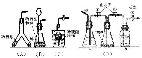 (2)D装置中③是出气口,所以a中应该盛放稀硫酸或盐酸,而b中应该放水或氢氧化钠溶液,以除去H2中可能混入的酸滴或酸雾。