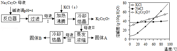 (3)根据溶解度的大小,高温浓缩时,NaCl析出,所以固体A主要为NaCl;冷却结晶时,K2Cr2O7析出,所以固体B主要为K2Cr2O7