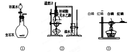 试题分析:①浓氨水与生石灰可以制取氨气,正确;②乙烯使溴水褪色,不能证明是发生了加成反应,错误;③白磷的温度高,红磷的温度低,但白磷燃烧,红磷不燃烧,不能比较二者的着火点,二者交换位置 可以,错误;④碳化钙遇水即成粉末状,所以不能用简易启普发生器装置来控制反应的进行,错误,所以答案选A。