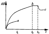 ?2AB;在不同温度和压强改变的条件下,产物AB和AB%的生成情况如图,a为500℃时的情况;b为300℃时的情况,c为反应在300℃时从时间t3开始向容器中加压的情况,则下列叙述正确的是