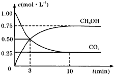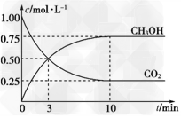 CH3OH(g)+H2O(g) ΔH=-49.0?kJ/mol。一定条件下,向体积为1?L的密闭容器中充入1?mol?CO2和3?mol?H2,测得CO2和CH3OH(g)的浓度随时间的变化曲线如下图所示。下列叙述中正确的是