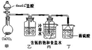(2)某探究活动小组根据上述制碱原理,欲制备碳酸氢钠,同学们按设计的方案进行实验。将二氧化碳气体通入含氨的饱和食盐水中制备碳酸氢钠,实验装置如下图所示(图中夹持、固定用的仪器未画出)。请回答