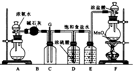 2、实验题 某学生利用以下装置探究氯气与氨气之间的反应。图中A、F分别为氨气和氯气的发生装置,C为纯净干燥的氯气与氨气反应的装置。