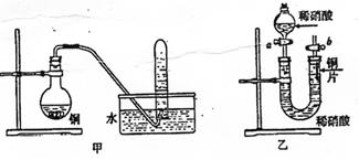 1、填空题 (10分(1)和(3)各3分其余每空2分)下图是甲、乙两位同学探究铜与稀硝酸反应还原产物的实验装置图,请图回答下列问题: