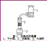④交换吸附:氯型强碱性阴离子交换树脂(R—Cl表示)注入交换柱中(树脂层高度为12cm),如右图连接交换装置,待溶液全部通过后,树脂颜色变为黑红色。