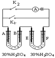 D.若再单独闭合K2,电极A、B的质量会逐渐增加,电极E、F的质量会逐渐减小