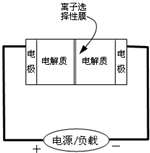 电池中的左右两侧为电极,中间为离子选择性膜,在电池放电和充电时该膜只允许钠离子通过.电池充、放电的化学反应方程式为:2Na2S2+NaBr3