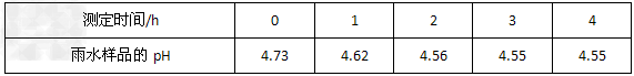 (4)酸雨是大气污染的危害之一,二氧化硫(SO2)的含量是空气质量监测的一个重要指标。某兴趣小组同学收集某地的雨水进行实验,每隔1h,通过pH计测定雨水样品的pH,测得的结果如下表