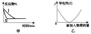 D.乙图可表示H2SO4溶液中滴入Ba(OH)2溶液至过量过程中溶液导电性的变化