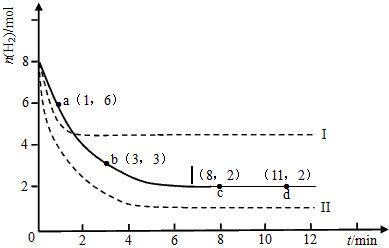 2L的密闭容器中,测得H2的物质的量随时间变化如下图所示(实线)。