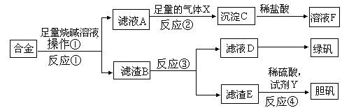 (2)在滤渣E中加入稀硫酸和试剂Y制胆矾晶体是一种绿色化学工艺,试剂Y为无色液体,反应④的总化学方程式是_____________________________________
