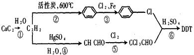 ②DDT有毒性,国际上已禁止使用,因为它在动物体内转化为一种使动物生长失调的物质(结构如右面所示结构式)。在实验室也可实现这种转化,表示这种转化的化学方程式为?
