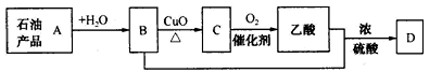 5、选择题 已知:含C=C的物质(烯烃)一定条件下能与水发生加成反应,生成醇(含羟基的烃的衍生物);有机物A-D间存在图示的转化关系。下列说法不正确的是 [???? ]