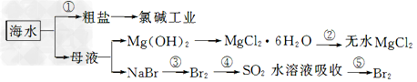 B.过程②中结晶出的MgCl2·6H2O要在HCl氛围中加热脱水制得无水MgCl2