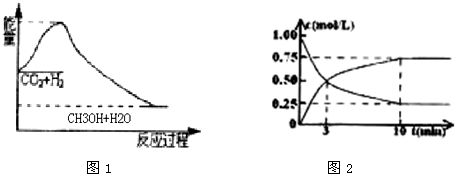 (2)为探究反应原理,现进行如下实验,在1L固定体积的密闭容器中,充入1molCO2和3molH2,一定条件下发生反应:CO2(g)+3H2(g)?CH3OH(g)+H2O(g),经测得CO2和CH3OH(g)的浓度随时间变化如图2所示.