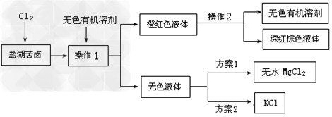 1、实验题 我国西部地区拥有非常丰富的盐湖资源,对盐湖矿产资源的综合开发利用是西部大开发的重要课题之一。某校实验小组拟采用盐湖苦卤(富含K+、Mg2+、Br-、SO42-、Cl-等)为原料,制取较纯净的无水MgCl2、KCl晶体及液溴(Br2),他们设计了如下实验方案: