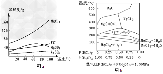 ①KCl,MgCl2,K2SO4,MgSO4在水中的溶解度随温度变化的关系如下图a所示