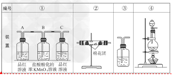 (3)实验时可观察到装置①中A瓶的溶液褪色,C瓶的溶液不褪色。A瓶溶液的作用是______________,B瓶溶液的作用是__________,C瓶溶液的作用是______________。