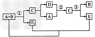 3、推断题 A、B、C、D是四种人们熟悉的与生命运动密切相关的化合物,它们所含的元素不超过三种;目前化合物B在自然界里的含量呈上升趋势,造成环境温度升高,从而对环境产生不利影响;E是一种生活中常见的化合物,它们有下列关系(反应条件均未注明):