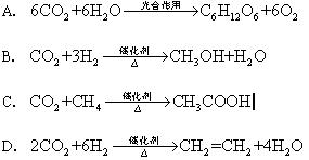 2、选择题 控制和治理CO2是解决温室效应的有效途径。以下反应是CO2转化成有机物的例子,其中原子利用率最高的是: