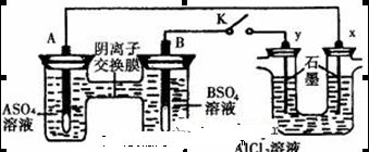 3、选择题 某同学按右图所示的装置进行实验,A、B为两种常见金属,它们的硫酸盐可溶于水。当K闭合时,在交换膜处