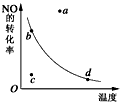 2NO2(该反应放热)反应中NO的转化率与温度的关系曲线,图中标有a、b、c、d四点,其中表示未达到平衡状态,且v(正)>v(逆)的点是