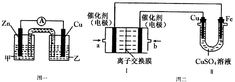 ②图二中,I是甲烷燃料电池(电解质溶液为KOH溶液)的结构示意图,该同学想在Ⅱ中实现铁上镀铜,则b处通入的是____(填“CH4”或“O2”),a处电极上发生的电极反应是____________。
