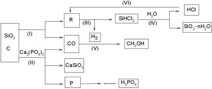 由Ca3(PO4)2、SiO2、焦炭等为原料生产硅胶(SiO2·nH2O)、磷、磷酸及CH3OH,下列工艺过程原料综合利用率高,废弃物少。