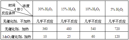 (1)下表是该小组研究影响过氧化氢(H2O2)分解速率的因素时采集的一组数据: