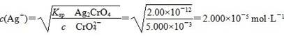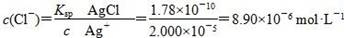 4、选择题 已知Ksp(AgCl)=1.78×10-10,Ksp(Ag2CrO4)=2.00×10-12。在只含有KCl、K2CrO4的混合溶液中滴加0.001 mol·L-1的AgNO3溶液,当AgCl与Ag2CrO4共存时,测得溶液中CrO42-的浓度是5.000×10-3 mol·L-1,此时溶液中Cl-的物质的量浓度是