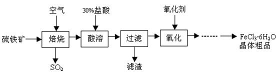 1、填空题 某课题组研究以硫铁矿(主要成分为FeS2)为原料制备氯化铁晶体(FeCl3·6H2O)的工艺,其设计的流程如下: