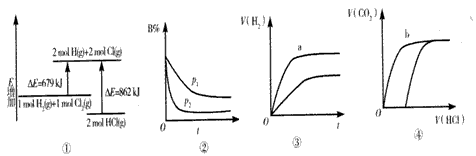 A.①表示化学反应H2(g)+Cl2(g)==2HCl(g)的能量变化,则该反应的反应热△H=+183 kJ·mol-1