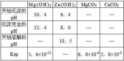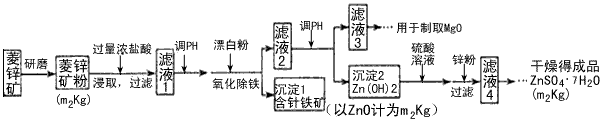 3、填空题 硫酸锌可作为食品锌强化剂的原料。工业上常用菱锌矿生产硫酸锌,菱锌矿的主要成分是ZnCO3,并含少量的Fe2O3、FeCO3、MgO、CaO等,生产工艺流程示意如下