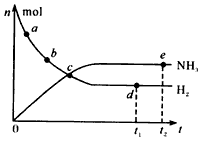 ①673K,30MPa下,上述合成氨反应中n(NH3)和n(H2)随时间变化的关系如图所示。下列叙述正确的是