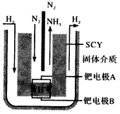 (2)1998年希腊亚里士多德大学的两位科学家采用高质子导电性的SCY陶瓷(能传递H+),实现了高温常压下高转化率的电解合成氨。其实验装置如图阴极的电极反应式___________________。
