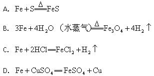 2、选择题 在以下4个反应中,铁元素的化合价变化与另外3个反应不同的是(???)