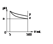 2、选择题 pH=11的x、y两种碱溶液各5 mL,分别稀释至500 mL,其pH与溶液体积(V)的关系如图所示,下列说法正确的是