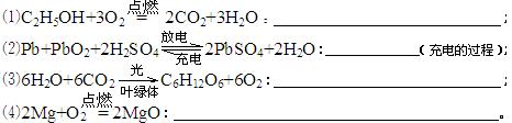 3、填空题 (8分)下列是用化学方程式表示的化学变化,请在每小题后的横线上注明能量的转化形式
