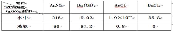 由此溶解度可知在水溶液中上述化合物发生复分解反应为:2AgNO3+BaCl2=2AgCl↓+Ba(NO3)2,那么上述几种化合物在液氨溶液中发生复分解反应的化学方程式(?)