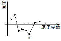 5、选择题 图中曲线粗略表示原子序数在前18号中的某些元素的原子序数(按递增顺序连续排列)和相应单质沸点的关系,其中A点表示的元素是