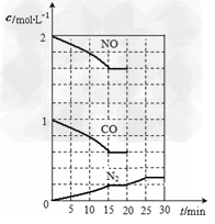 若保持温度不变,20min时再向容器中充入CO、N2各0.6mol,平衡将________移动(填“向左”、“向右”或“不”)。???????????????????? ③20min时,若改变反应条件,导致N2浓度发生如图所示的变化,则改变的条件可能是?_____________(填序号)。 A.加入催化剂 ???????B.降低温度 ? ?C.缩小容器体积 ?????D.增加CO2的量 (4)利用Fe2+、Fe3+的催化作用,常温下将SO2转化为SO42-而实现SO2的处理(总反应为2SO2+O2+2H2O=2H2SO4)。已知,含SO2的废气通入含Fe2+、Fe3+的溶液时,其中一个反应的离子方程式为4Fe2+?+?O2+?4H+?=?4Fe3+?+?2H2O,则另一反应的离子方程式为______________?。