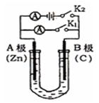 (1)打开K2,合并K1,若所盛溶液为CuSO4溶液:则A为 极,A极的电极反应式为 。若所盛溶液为KCl溶液:则B极的电极反应式为