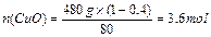 2、计算题 (8分)某研究性学习小组拟用铜屑与氧化铜混合物与硫酸和硝酸组成的混酸反应来制取CuSO4·5H2O晶体,混酸中硝酸的还原产物为NO,反应过程中不产生SO2,反应后的溶液中不含Cu(NO3)2, 反应中固体完全溶解,两种酸均恰好完全反应。设固体混合物的总质量为480 g,其中铜屑的质量分数为x,试回答下列。