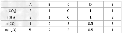 (3)在850℃时发生上述反应,以下表中的物质的量投入恒容反应器,其中向正方向移动的组是______(填代号),平衡后与C中各物质的百分含量相等的组有__________(填代号?)