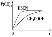 | 电离平衡常数 | 1.3×10-1 | 1.7×10-5 | 6.2×10-10 | K1=4.3×10-7 K2=5.6×10-11 回答下列问题: (1)写出碳酸的第一级电离平衡常数表达式:K1=_______________________。 (2)等物质的量浓度的a.CH3COONa、b.NaCN、c.Na2CO3、d.NaHCO3溶液的pH由大到小的顺序为________(填字母)。 (3)常温下,0.1 mol·L-1的CH3COOH溶液加水稀释过程中,下列表达式的数据变大的是 (填序号) A.[H+] B.[H+]/[CH3COOH] C.[H+]·[OH-] D.[OH-]/[H+] (4)25 ℃时,将20 mL 0.1 mol·L-1 CH3COOH溶液和20mL0.1 mol·L -1HSCN溶液分别与20 mL 0.1 mol·L-1NaHCO3溶液混合,实验测得产生的气体体积(V)随时间(t)的变化如图所示:反应初始阶段两种溶液产生CO2气体的速率存在明显差异的原因是 反应结束后所得两溶液中,c(CH3COO-)________c(SCN-)(填“>”、“<”或“=”) ![]() (5)体积均为100 mL pH=2的CH3COOH与一元酸HX,加水稀释过程中pH与溶液体积的关系如图所示,则HX的电离平衡常数________(填“大于”、“小于”或“等于”)CH3COOH的电离平衡常数。 ![]() (6)25 ℃时,在CH3COOH与CH3COONa的混合溶液中,若测得pH=6,则溶液中c(CH3COO-)-c(Na+)=________mol·L-1(填精确值), c(CH3COO-)/c(CH3COOH)=________。 (7)写出少量CO2通入次氯酸钠溶液中的离子方程式:_____________________________。 2、选择题 下列溶液中各微粒的浓度关系不正确的是( ) 3、选择题 当溶液中HS-+H2O 4、选择题 用水稀释0.5mol·L-1的醋酸溶液,其中随水量的增加而增大的是[???? ] 5、选择题 pH=1的两种一元酸HX和HY的溶液,分别取50mL,加入足量的镁粉,充分反应,收集的氢气的体积分别为V(HX)和V(HY),若V(HX)>V(HY),下列说法正确的是 [???? ] |