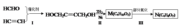 5、推断题  以 HCHO 和 C2H2为有机原料,经过下列反应可得化合物 N ( C4H8O2)。